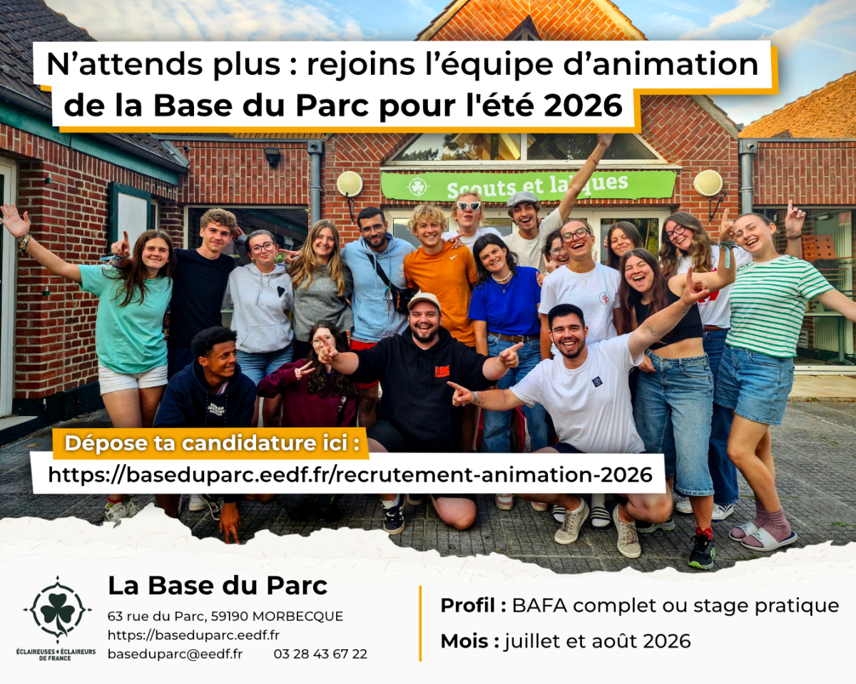 Pour postuler en tant qu’animateur ou animatrice à la Base EEDF du Parc, remplis le formulaire ci-dessous en cliquant sur « Envoyer ma candidature ».
